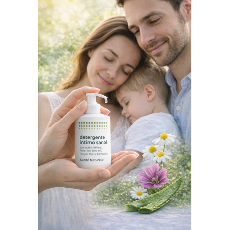 Il Detergente Intimo Santé è formulato con pH fisiologico e ingredienti di origine naturale selezionati perrispettare l’equilibrio delle mucose, risultando più delicato rispetto ai comuni detergenti generici.