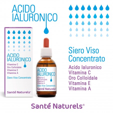 Siero Viso Concentrato all'Acido Ialuronico in Oro Colloidale con Vitamina C, Vitamina E e Vitamina A
