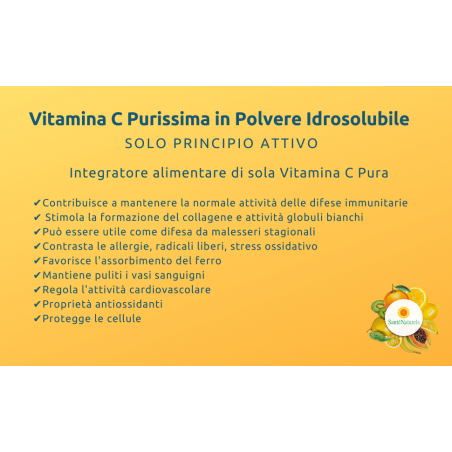 Contenuto: 500 g in polvere di Vitamina C (Sodio Ascorbato Purissimo).