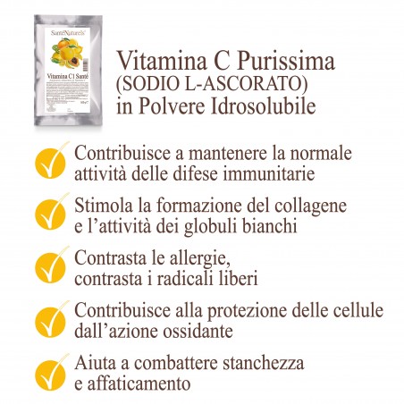 Formulazione: Polvere idrosolubile. Puro Sodio L-Ascorbato (E301) priva di altri ingredienti.